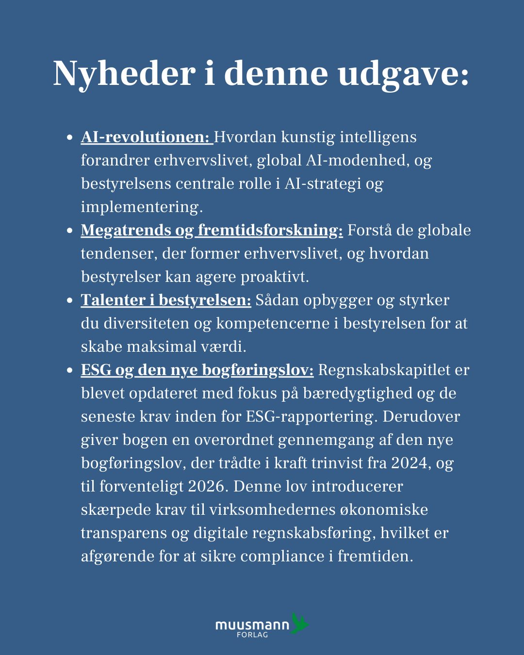 - Kortfattet ledelsesberetning med spørgsmål til refleksion